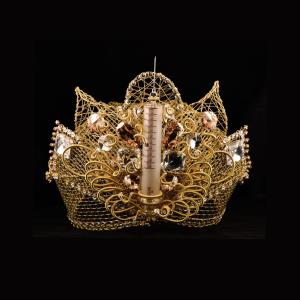 خشونت در آثار قمی پنهان شده، اما نه به تمامی. بخش عظیمی از این خشونت در زیر لفافهی زیور پنهان شده اما با نزدیک شدن به آن، خود را نشان میدهد و از پشت پرده بیرون میآید. تیغها، خنجر، سرنگ و بسیاری نشانههایی که بالقوه و بالفعل موجب خشونت هستند به مخاطب نشان داده میشود. مواجهه با خشونت و مصادیق آن در تاجها را میتوان نوعی از فاصله گذاری برِشتی و شوکآور محسوب کرد. هر دو، عمل بیگانهسازی را در خود دارند. قمی در این مجموعه ما را در نقطهای کلیدی با آثارش بیگانه میکند. این فاصلهگذاری و بیگانه سازی موجب میشود تا بیننده نتواند بر اساس عواطف و پیشفرضهای خویش با اثر ارتباط عاطفی بگیرد. درست مانند اتفاقی که در تئاترِ روایی[2] رخ میدهد. لحظهای که انتظار داریم در میان این مفتولهای برنز، استیل و برنج نگینی از الماس، طلا و یا گوهری گرانبها باشد؛ ناگاه چاقو، تیغهای کاتر و یا شیئی خطرساز را میبینیم. نگینهایی که همراه داشتنشان دردسر آفرین است، چه رسد به استفاده از آنها بعنوان سلاح و غیره. به همین دلیل ارتباط با آثار ارائه شده از راههای کلیشه و معمول، ارتباطی نه لزوماً عاطفی و آشنا، بلکه نگاهی دیگر را طلب میکند.
